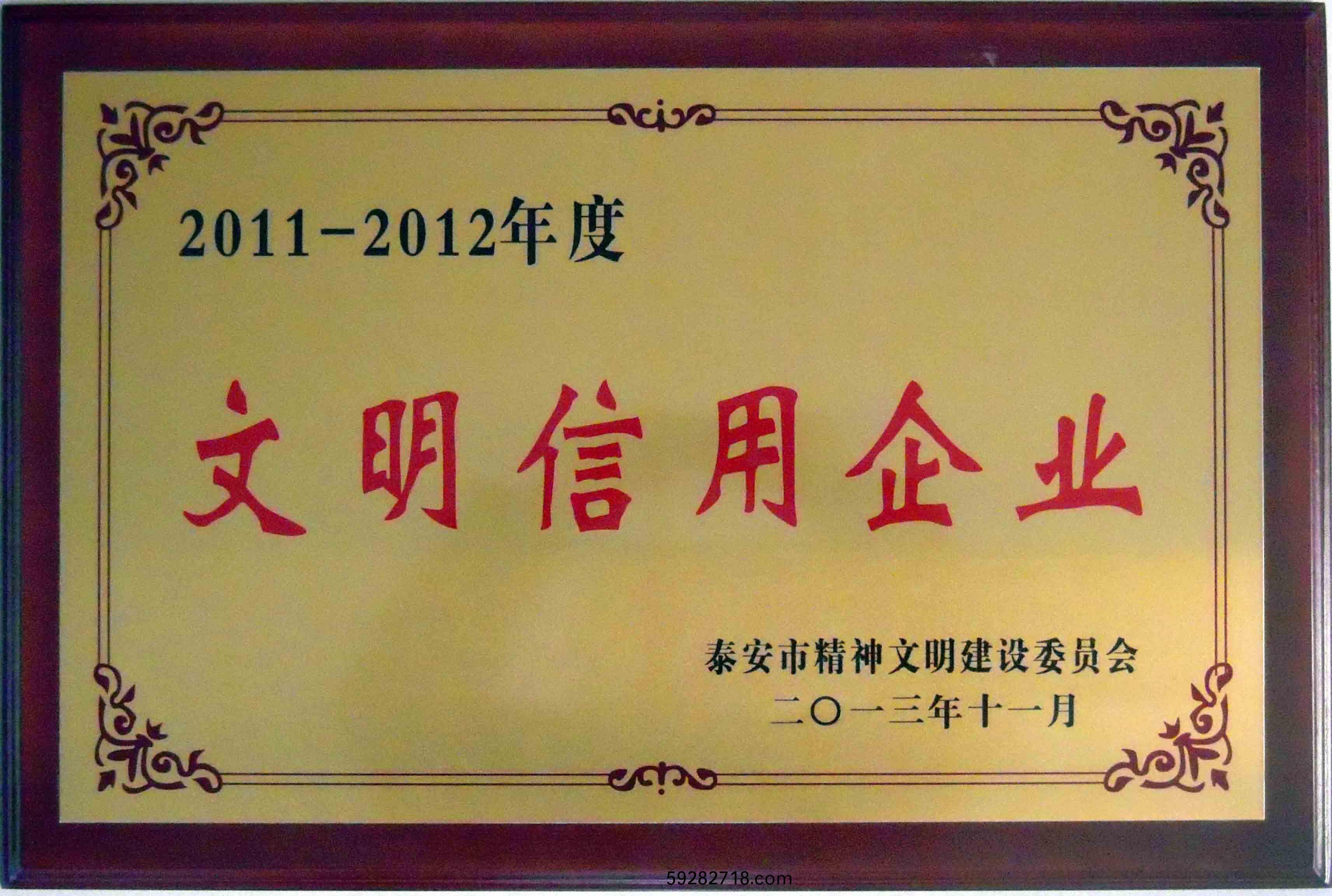 根據泰安市精神文(wen)明委員會下髮《關于命名2011-2012年度(du)泰安市文明(ming)誠信金螎單位、文明信用鄕(xiang)鎮、文明信用企業的決定(ding)》(泰文明委【2013】10號),集糰(tuan)公司(si)被授予“泰(tai)安市文明信用企業”稱號。