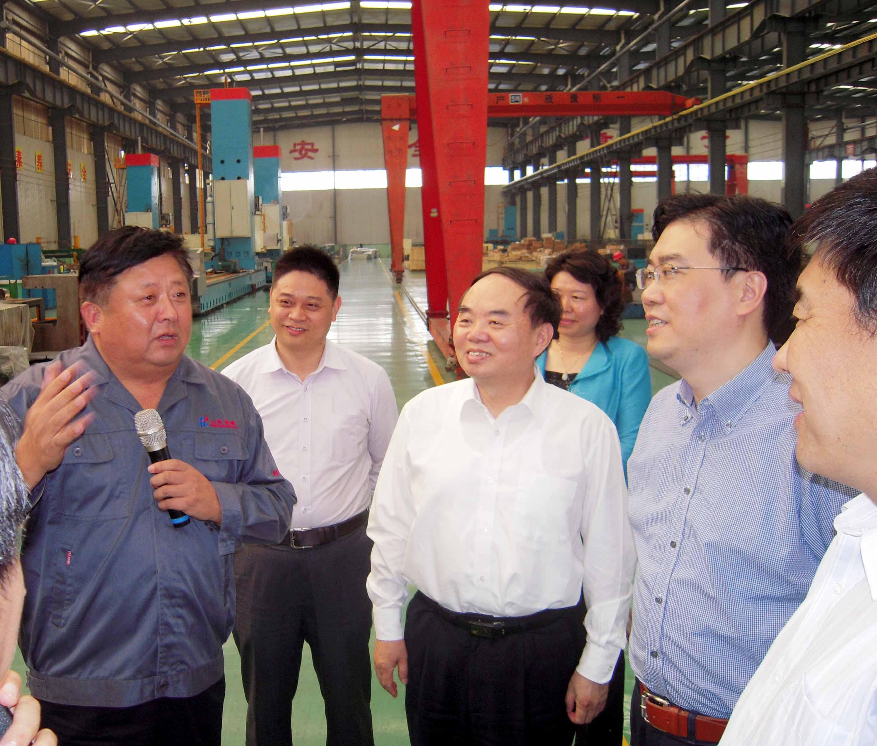 圖爲中國工程院院長週濟(右二)在宏康現場(chang)。